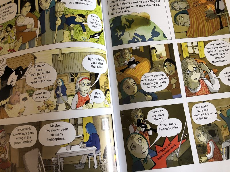 The Lost Child of Chernobyl is a perfect example of the power of graphic novels and Bate skilfully captures the complexities of the event and the stories of those who survived it. She combines illustrated panels and text that explain the facts about the Chernobyl disaster with those that communicate the story of her characters. The images contain so many details about the destruction caused by the explosion but also the way that nature is capable of recovery. Her controlled and compassionate dialogue also nods to the wider history of Ukraine and the sisters refer to the famine and war that they have lived through. This book has so many different layers that readers of any age will discover so much every time they revisit it.