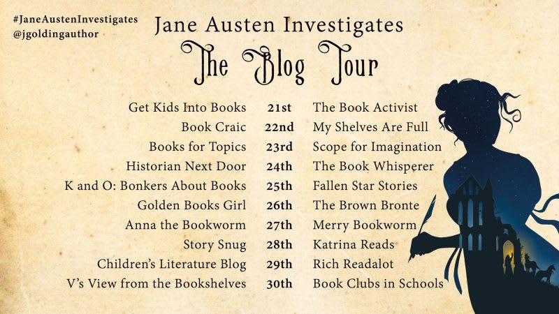 This week marks the release of the The Abbey Mystery, the first in Julia Golding’s Jane Austen Investigates series. Based on the life of young Jane during the late eighteenth century, this book is both a perfect introduction to Austen and a delight for those who are already fans of her books. Golding has perfectly captured everything that is so familiar to us from Jane’s works at the same time as widening the scope of what we expect from a story set during the Regency period. I am so pleased to be a part of the blog tour that celebrates this brilliant historical detective story and my book blogging colleagues have featured some wonderful posts already. You can read a review by Scope For The Imagination here and a piece by Golding about the subjects that are not explicitily discussed in Austen’s books such colonialism, politics, the Napoleonic War and slavery on the Federation For Children’s Books website.