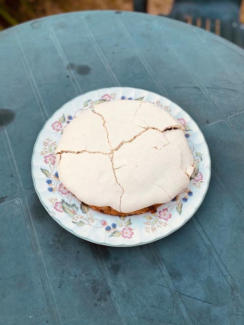 It appears to resemble a meringue, adding a new sweet texture to the cake.