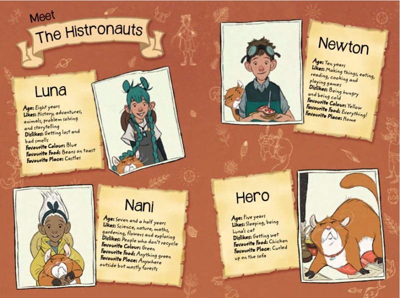 Luna, Nani, Newton and Hero are The Histronauts. You can join them as they journey through time in this exciting and beautiful book series. Their adventures to date have transported them back to ancient Rome, ancient Egypt and the world of the Vikings.